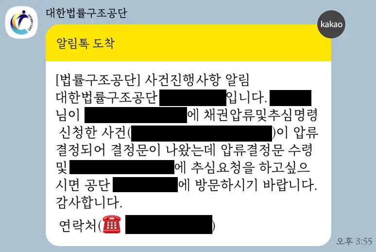 법률공단에서 “구조결정이 났다”는 카톡 메시지가 왔고, 같은 날 사건이 법원에 접수되었습니다.